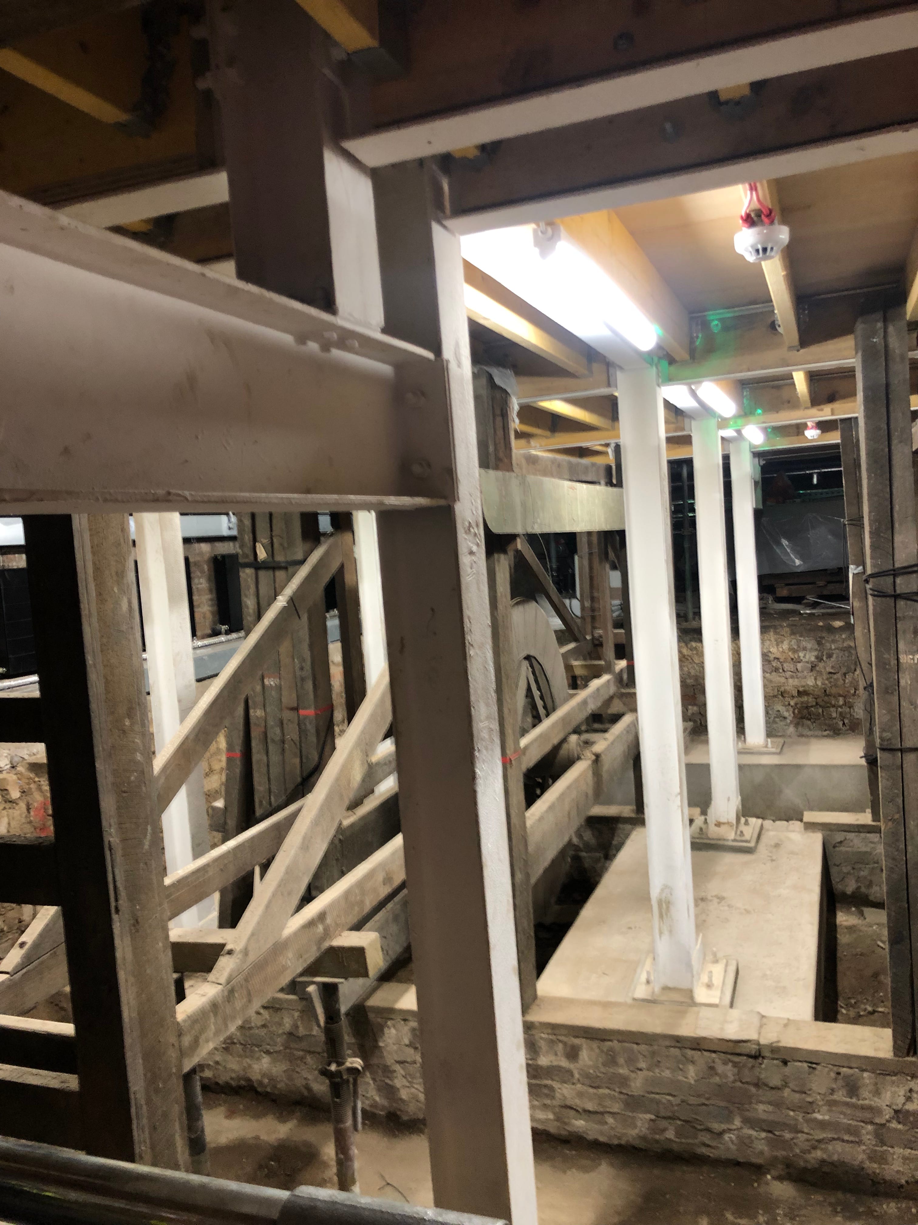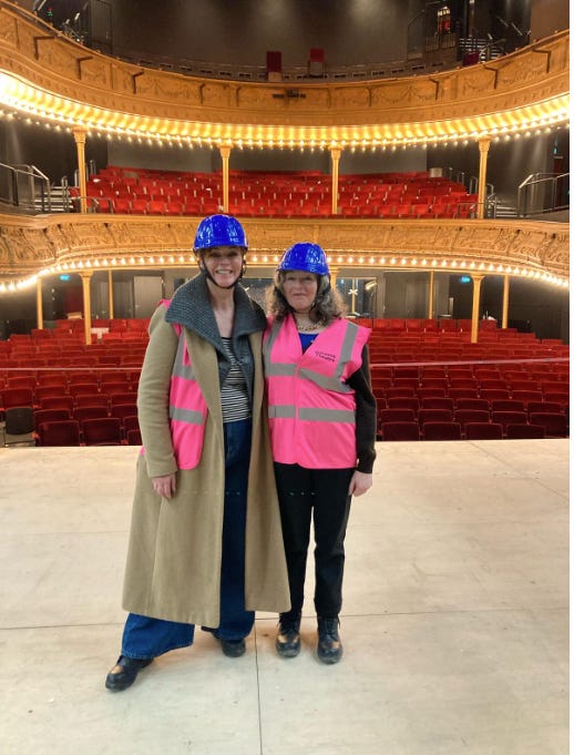 Two groups of journalists and theatre people were already being shown around the almost-completely renovated space. I shoved on work boots, hard hat and a fetching pink hi-viz and joined the tour.